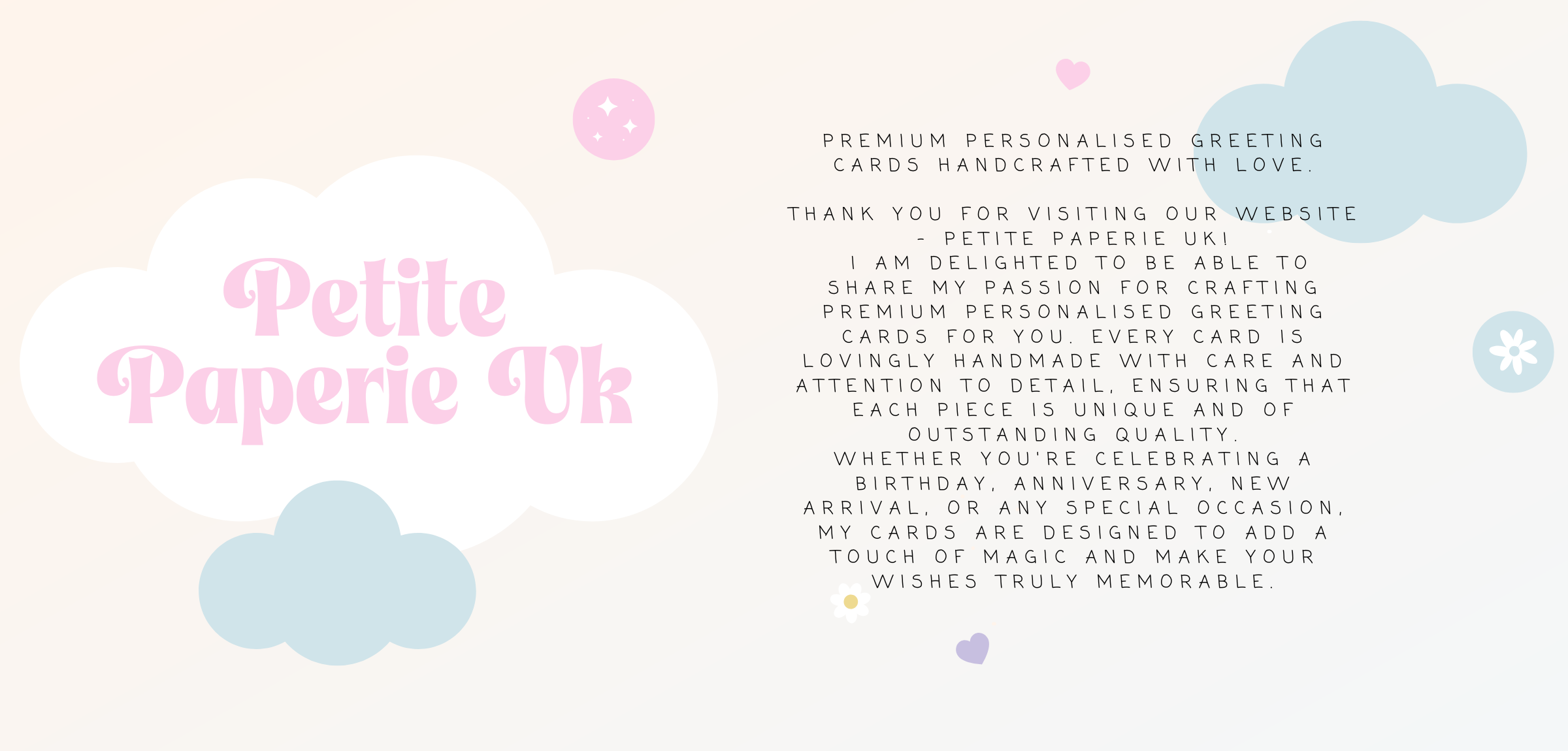 Weather it's time to celebrate, or to send your thank you's, you need to make sure you do it right! With our Personalised Cards from Petite Paperie, they will be the star of the show for any occasion! Whether it's a Birthday for kids, a Wedding, a New Baby, or Christening , they are all special occasions worthy of the best looking personalised card around!