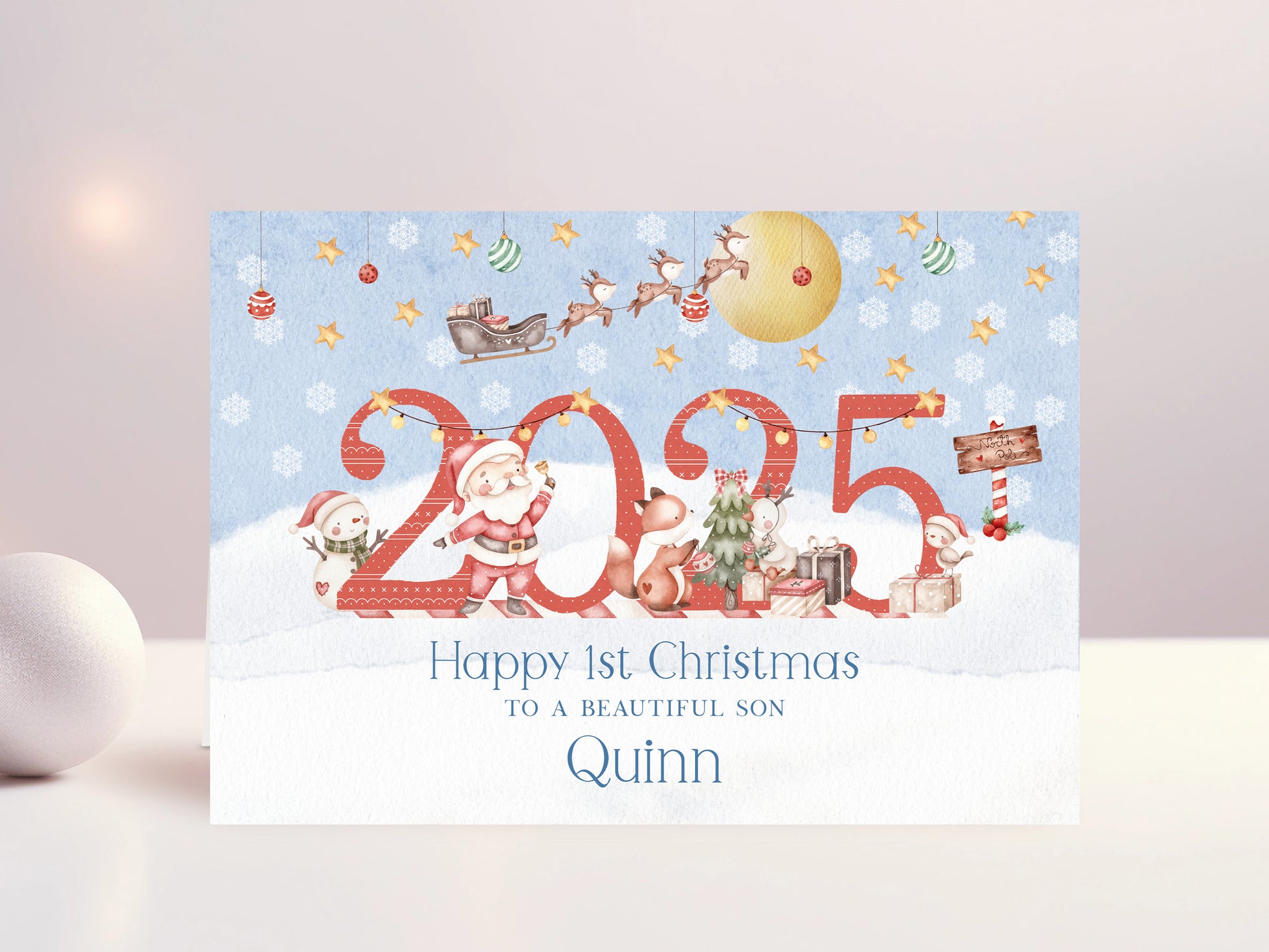♥Celebrate the magic of Christmas with our Personalised Christmas Card. This beautifully crafted card features boys name alongside a charming festive design, making it a truly special keepsake for the family. The personalised touch not only adds a unique element but also makes the card a cherished moment of this beautiful occasion.