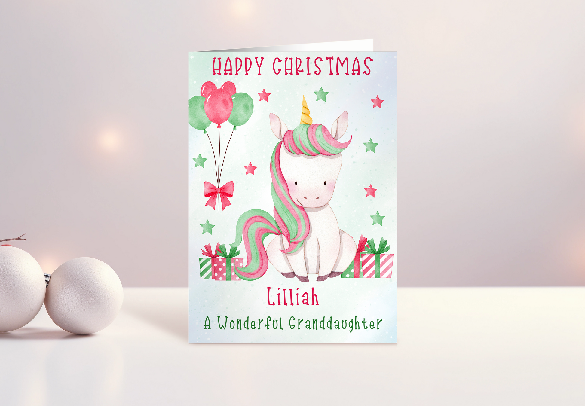 Personalised Unicorn Christmas Card for Granddaughter, Daughter, Niece, Special Little Girl